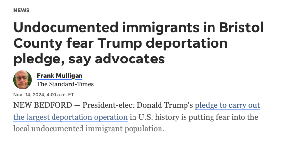 NEW BEDFORD — President-elect Donald Trump’s pledge to carry out the largest deportation operation in U.S. history is putting fear into the local undocumented immigrant population.